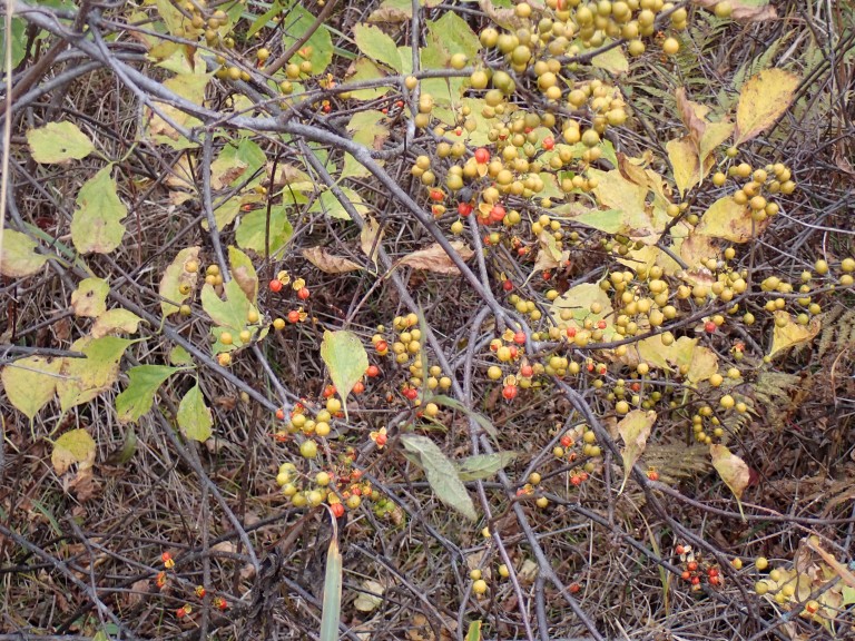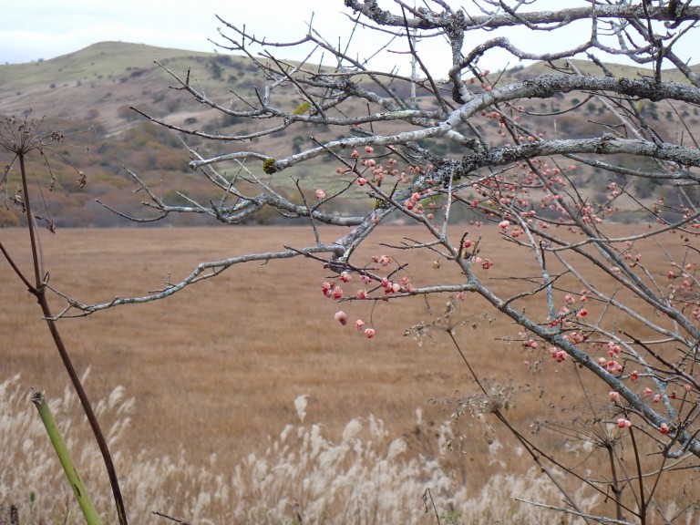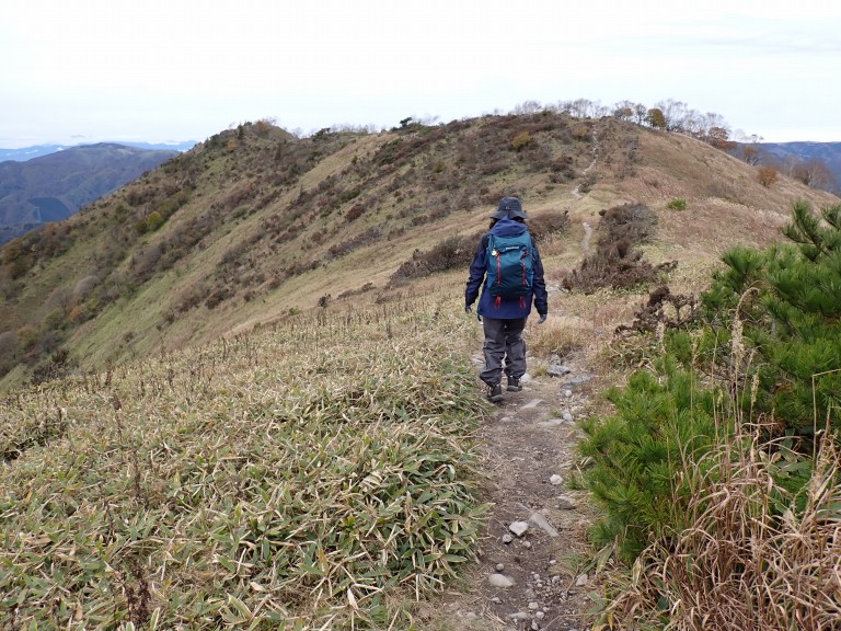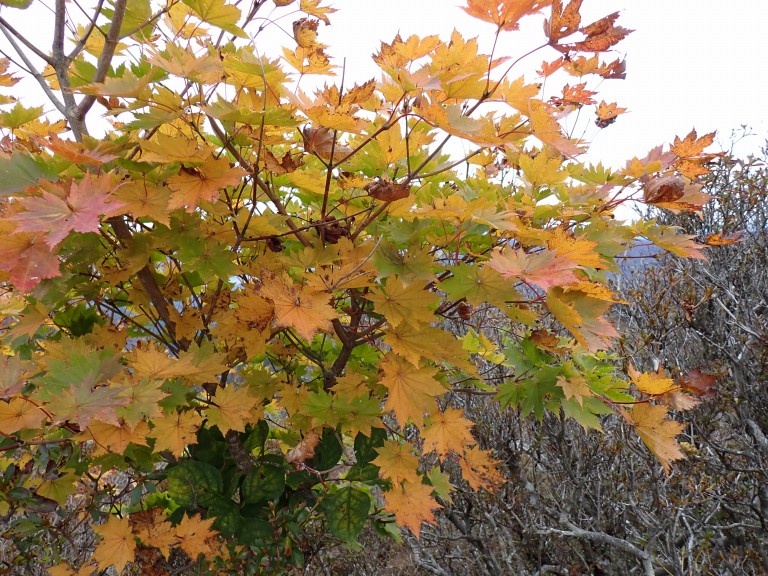 | 今回も妹と山へ。朝から天気が今一つなので、高い山に登っても展望は期待できないだろう。というわけでお手軽な鷲ヶ峰に登ることにした。 八島湿原駐車場。御覧の通り、車は多くない。日差しがないためか肌寒く感じるので、防寒の備えで出発。 ![]() 八島園地から鷲ヶ峰へ。どんよりとした空模様のわりには、周辺の山々は良く見える。 ![]() 八島園地からひと登りで開けた場所に出た。 ![]() シカ柵ゲートからしばらくは登りが続く。 ![]() 尾根を登り切ったら気持ちの良い尾根歩き。晴れていたらもっと良かったのにね。 ![]() カエデのグラデーションがいいね。 ![]() 蓼科山、車山。そして眼下には八島湿原。八ヶ岳には雲がかかっている。 ![]() 気持ちのよい道が続く。 ![]() 鷲ヶ峰に到着。誰もいない。 ![]() いつものようにスンスンも同行。 ![]() 山頂のベンチで昼食。コーヒーを豆から挽いて飲んでみた。当たり前だがいつものインスタントよりもおいしかった。 ![]() のんびりしたいが、風が出てきてじっとしていると寒いので早速下山開始。 ![]() 天気が良ければ展望を楽しみながらゆっくり下りたいところだが、この天気ではそんな気分にはならない。 ![]() サクサクと下る。 ![]() 帰りは湿原の木道経由で。 ![]() ツルウメモドキの実は、まだこんな感じ。 ![]() マユミは色づいていた。 ![]() ノブドウの実はカラフルだな。 ![]() 八島園地まで戻ってきた。天気は今ひとつだったけど、軽めの運動ができたのでストレス解消にはなったかな。 ![]() いつものように、原村で買い物をして甲府盆地へ戻った。 |