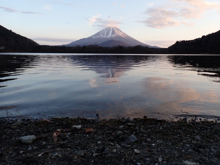| 今回も妹とハイキング。今回は富士山を近くで見られる山から石割山を選んでみた。個人的には約3年ぶりの訪問である。午前中は曇りで展望は期待できないが、午後からは晴れる予報なので富士山の全景が見ることができるだろう。 出発は石割神社登山口駐車場から。日差しは少ないが、思っていたよりも寒くない。この地域では観光振興投資には積極的なのだろう、鳥居周辺は3年前よりも整備され、橋は赤くなって建物もできている。 ![]() 石割神社名物?の長い石段。最初から飛ばさずに、準備運動のつもりで休みながら登る。 ![]() 階段を登ったら平行に移動。実際は緩い登りなのだが、階段がきつかっただけに水平に感じるから不思議。 ![]() 石割神社に到着。寒さを警戒して厚着をしてきた妹は汗をかいたようだ。 ![]() 上着を脱いで三巡。 ![]() ここから山頂まではきつい登り。背丈をこえるササで先が見えないのもつらい。 ![]() 石割山山頂に到着。時間は12時半前、上空は曇ってはいるが、富士山の全景が見えるほどに天候は回復してきた。 ![]() これくらい曇っていた方が、逆光にならずにいいかも。 ![]() 富士山が見えなかったら平尾山で昼食にしようかと思ったが、日がさしてきたのでここで昼食。鍋焼きうどん、おにぎり、コーヒーでのんびり過ごす。 ![]() 青空が広がってきた。 ![]() スンスンと富士山を撮りたかったが、逆光になるので杓子山を背景にしてみた。 ![]() 石割山から平尾山へ。足元に注意しながら下る。 ![]() 平尾山に到着。雲はすっかりなくなったのはよいが、逆光のため、標柱と富士山を一緒に撮れない。 ![]() この時期の平尾山には、マユミとツルウメモドキの実が多い。 ![]() 戻って分岐を平野方面へ。 ![]() 沢へ向かって下る。 ![]() 飛び石で左岸へ。 ![]() 駐車場へ到着。時間は15時前。運動量も時間配分もちょうどよかったかな。 ![]() 帰り道、山中湖畔で富士山をパチリ。 ![]() 最後に、精進湖畔でパチリ。 ![]() というわけで、富士山三昧の一日でした。 GPS軌跡表示 ※カシミール3D使用 ![]() 標高グラフ ※カシミール3D使用 GPS取得の標高を地図の標高に置き換えました。 ![]() |