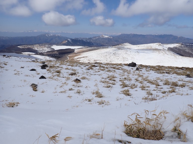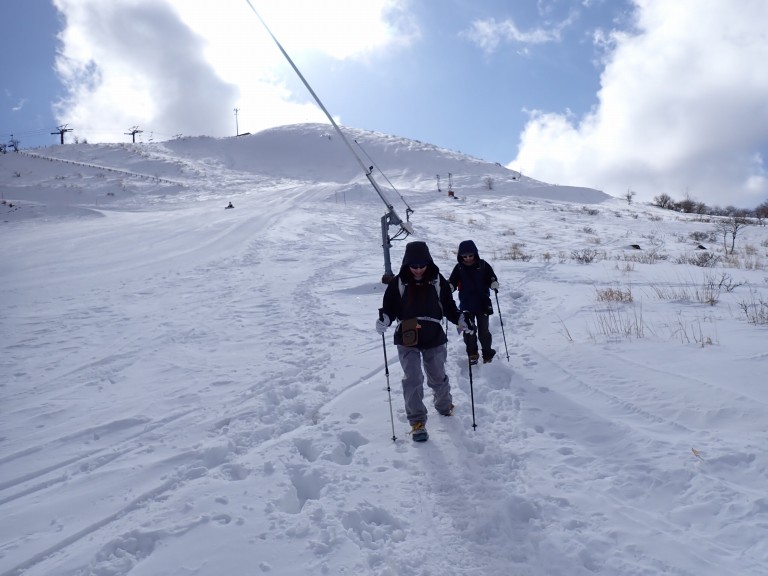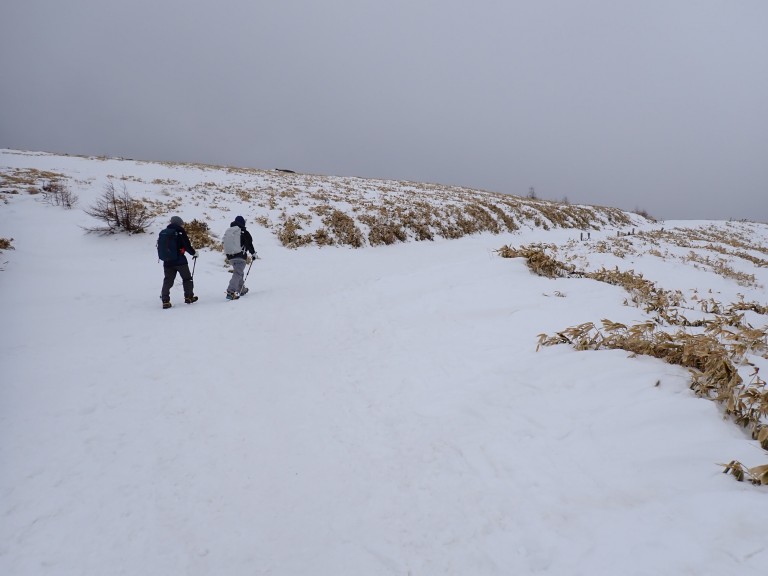 | 今日は妹と姪の3人でハイキング。富士山がきれいに見えるようであれば御坂山塊に登る予定であったが、あいにくの曇り空で展望が期待できそうにない。というわけでいつもの車山に出かけることにした。姪にとって雪上歩きは初めてだが、体力はありそうなので大丈夫だろう。 車山肩に到着。曇天にもかかわらず駐車場にはすでに10台ほどが停まっていた。天気は午後から回復する予報なので、期待して登ることにしよう。 ![]() 足元は、妹と姪が6本爪で自分はスノーシュー。雪は踏まれているようなので、踏み抜いて苦労することはないだろう。 ![]() 南が開けた所まで登ってきた。近くの八ヶ岳まで雪雲に覆われている。 ![]() 先行する姪は、見かけによらず登りに強い。初アイゼンにもかかわらず足元を気にすることなく黙々と進む。 ![]() 車山山頂。姪のペースに引っ張られるように意外と早く到着。 ![]() 展望はないが、とりあえず北アルプスを背景に記念撮影。天気の回復を期待して、レーダードームの裏で昼食にしよう。 ![]() 今日の昼食はラーメンと鍋焼きうどん。どちらも食べて体は温まるが、味の好みでは鍋焼きうどんの方かな。 ![]() 昼食を食べてコーヒーを飲み終わるころ、日がさしてきた。 ![]() 北アルプスの稜線がはっきりわかるまでに青空が広がってきた。 ![]() 八ヶ岳方面もだいぶ回復してきた。 ![]() 車山神社に立ち寄ってから、車山乗越方面に下山開始。 ![]() 新雪を歩いて見ようと足を踏み入れてみたらこんな感じ。おとなしくトレースのある道を歩くのが賢明だ。 ![]() 雪があって歩きにくいとはいえ、下りはあっという間。 ![]() 車山乗越到着。今日は蝶々深山まで行くのはやめよう。 ![]() 蝶々深山を、見ている。 ![]() 雪だるまにつけるために小物を持ってきたが、乾いた粉雪で固まらず製作を断念。楽しみは春先までお預けだね。 ![]() 車山肩へ。 ![]() 雪だるまはできなかったが、だるまさんはたくさんいた。 ![]() 車山肩に到着。この寒空では、さすがに人の姿はない。 ![]() 駐車場の車も少なくなっていた。少し寒かったけど、青空も見えたし、姪も楽しく過ごすことができたみたいでよかったね。 ![]() いつものように原村で買い物をして、甲府盆地へ戻った。 GPS軌跡表示 ※カシミール3D使用 ![]() 標高グラフ ※カシミール3D使用 GPS取得の標高を地図の標高に置き換えました。 ![]() |